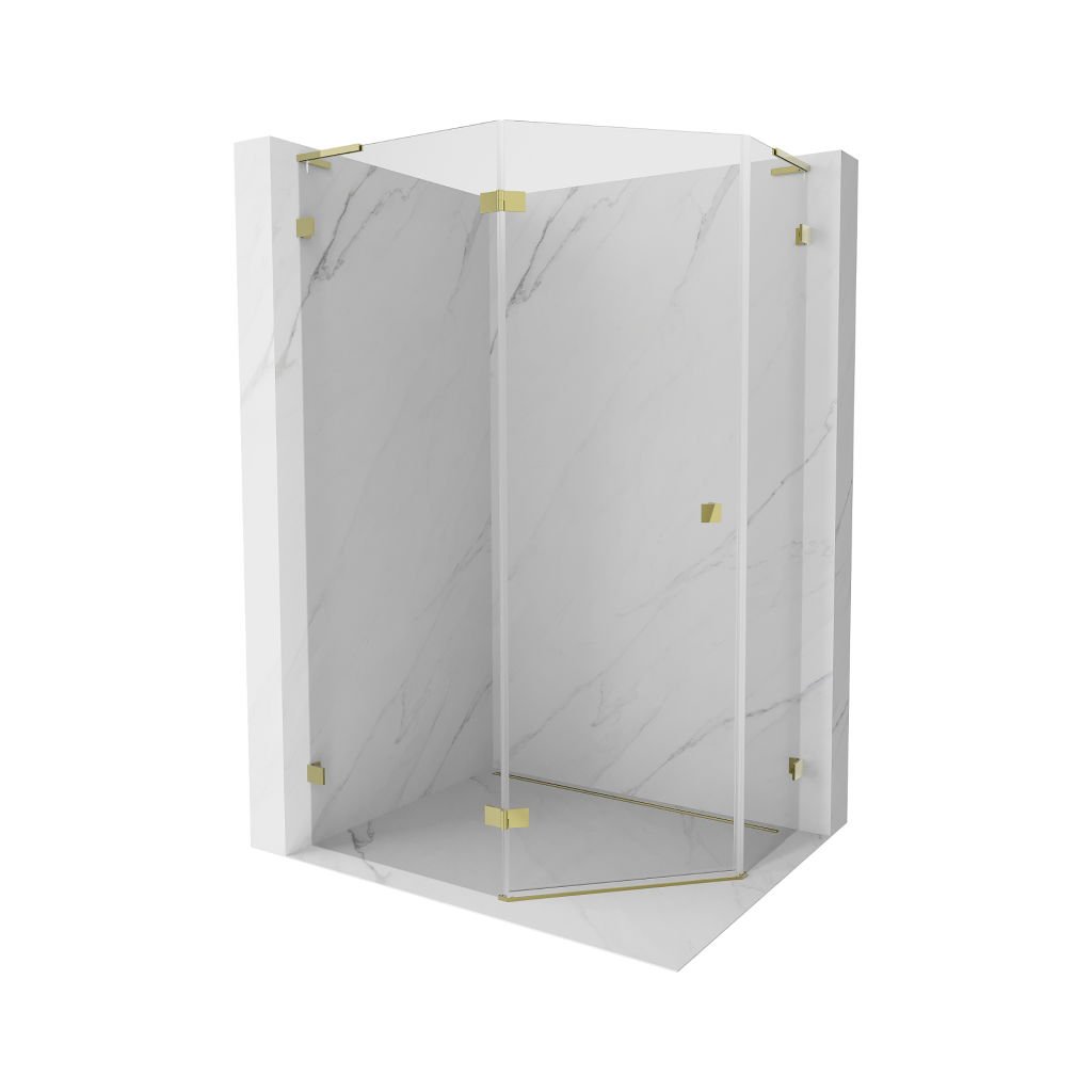 Mexen Lunar, L päťuholníkový sprchový kút naklápací doľava 100 x 90 cm, 8mm číre sklo, zlatý profil, 831L-100L-090P-50-00-L
