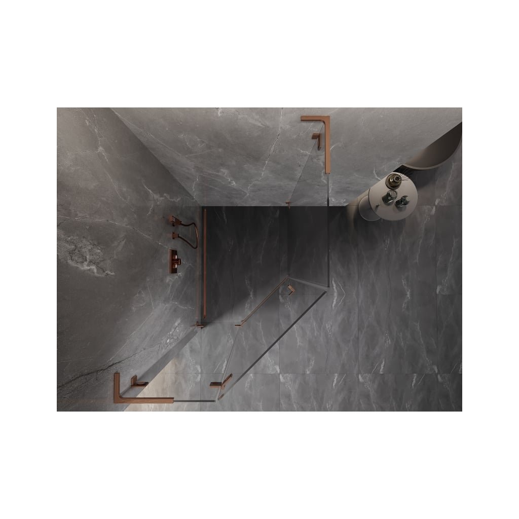 Mexen Lunar, L päťuholníkový sprchový kút naklápací doľava 80 x 100 cm, 8mm číre sklo, profil medená matná, 831L-080L-100P-65-00-L