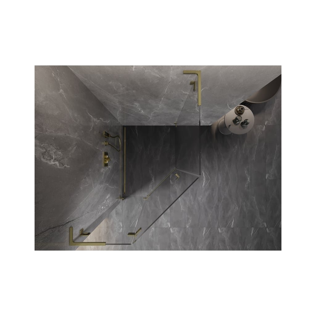 Mexen Lunar, L päťuholníkový sprchový kút naklápací doľava 80 x 100 cm, 8mm číre sklo, zlatý matný profil, 831L-080L-100P-55-00-L