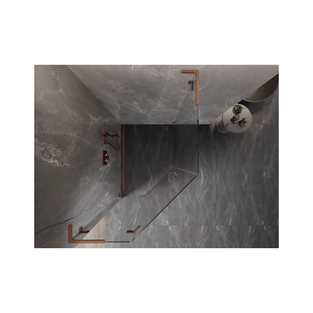 Mexen Lunar, L päťuholníkový sprchový kút naklápací doľava 80 x 90 cm, 8mm číre sklo, profil medená matná, 831L-080L-090P-65-00-L