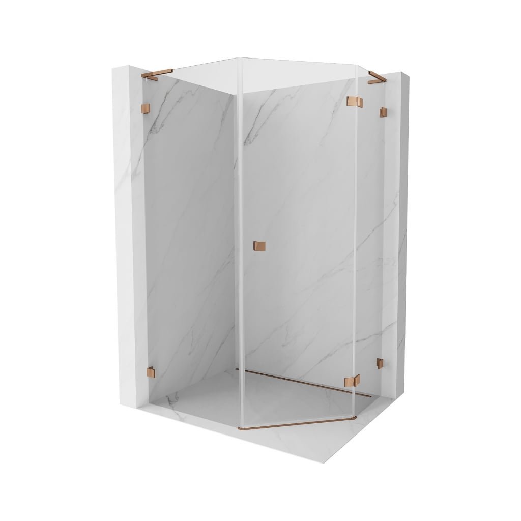 Mexen Lunar, L päťuholníkový sprchový kút s pravým sklonom 80 x 100 cm, 8mm číre sklo, profil ružové zlato, 831L-080P-100L-60-00-P