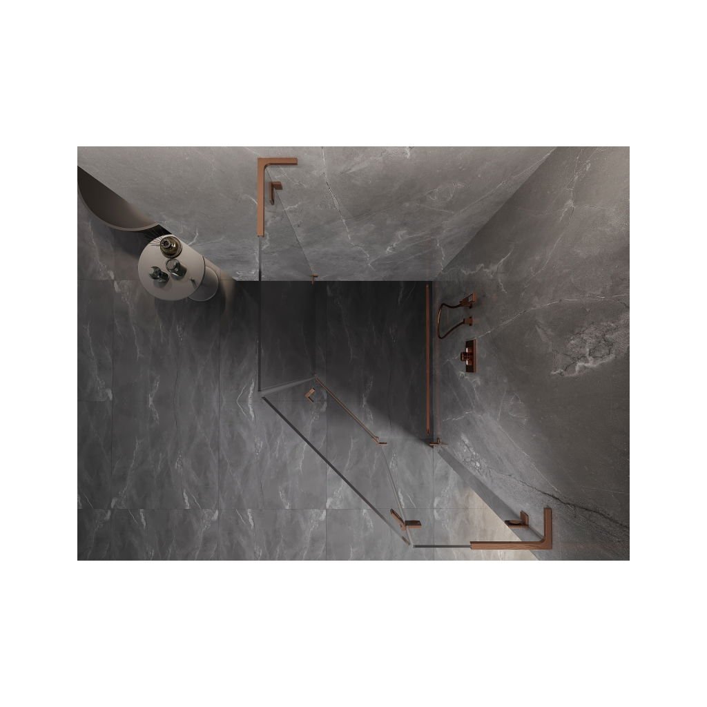 Mexen Lunar, L päťuholníkový sprchový kút s pravým sklonom 80 x 90 cm, 8mm číre sklo, profil medená matná, 831L-080P-090L-65-00-P