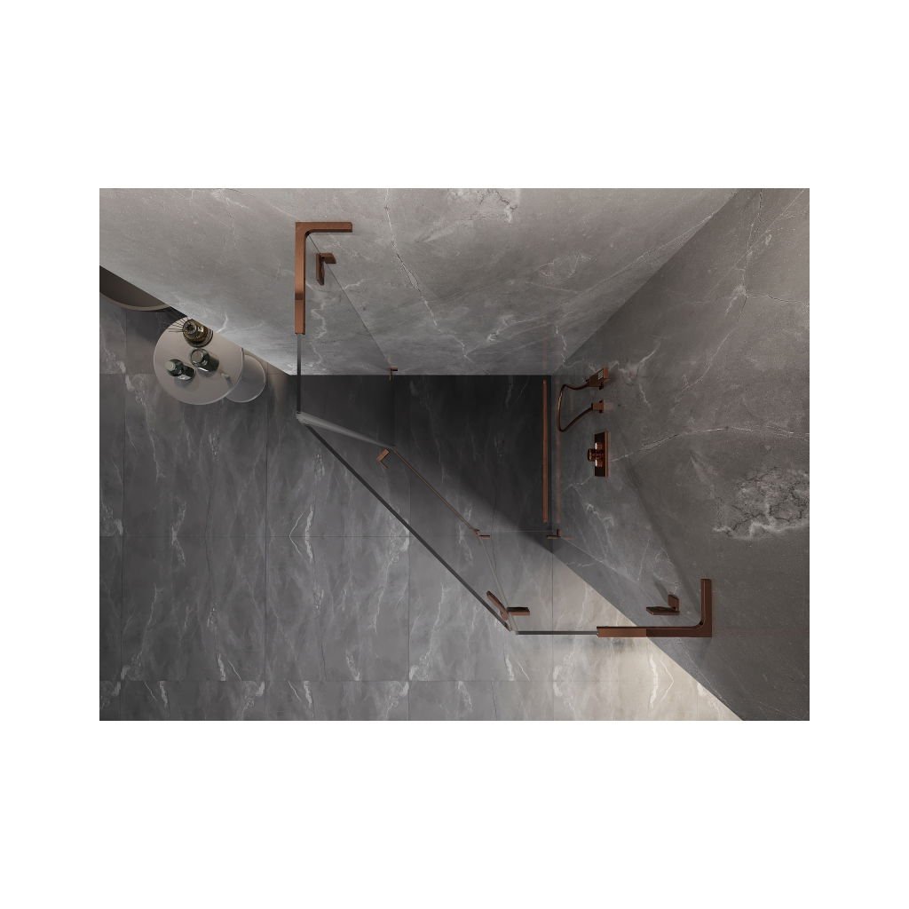 Mexen Lunar, L päťuholníkový sprchový kút s pravým sklonom 90 x 90 cm, 8mm číre sklo, profil ružové zlato, 831L-090P-090L-60-00-P