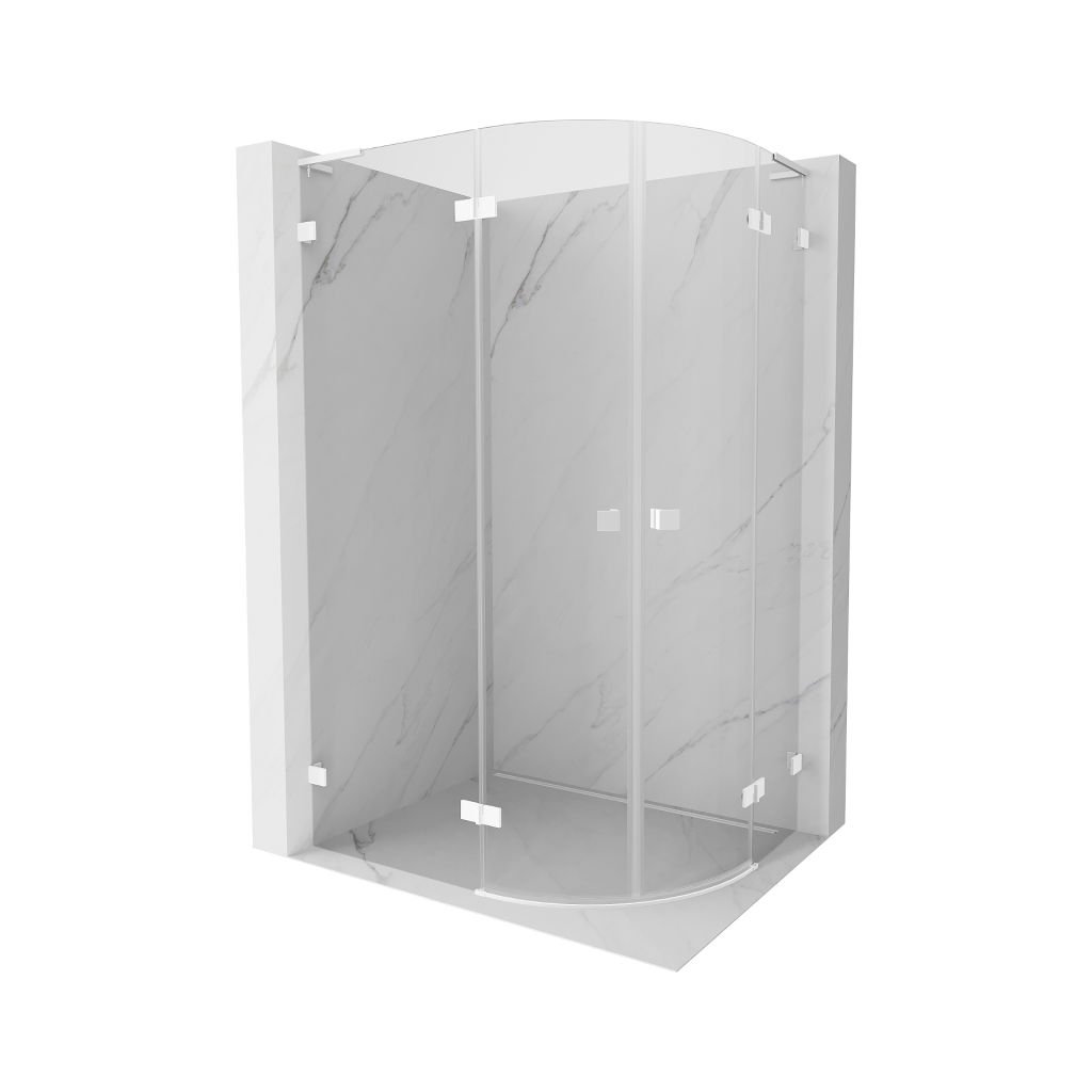 Mexen Lunar, L polkruhový sprchový kút naklápací doľava 90 x 80 cm, 8mm číre sklo, biely profil, 833L-090L-080P-20-00