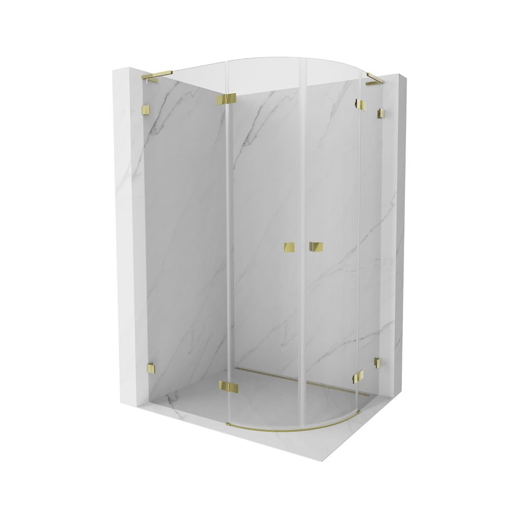 Mexen Lunar, L polkruhový sprchový kút naklápací doľava 90 x 80 cm, 8mm číre sklo, zlatý profil, 833L-090L-080P-50-00