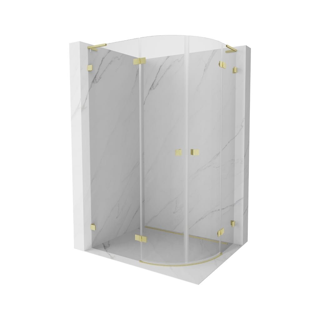 Mexen Lunar, L polkruhový sprchový kút výklopný doľava 80 x 70 cm, 8mm číre sklo, zlatý matný profil, 833L-080L-070P-55-00