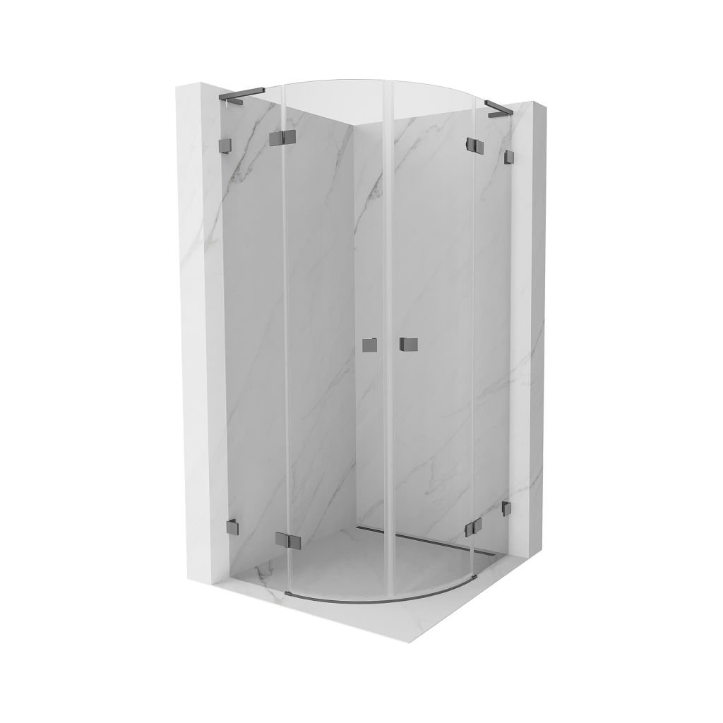 Mexen Lunar, L polkruhový výklopný sprchový kút 100 x 100 cm, 8mm číre sklo, grafitový profil, 833L-100L-100P-95-00