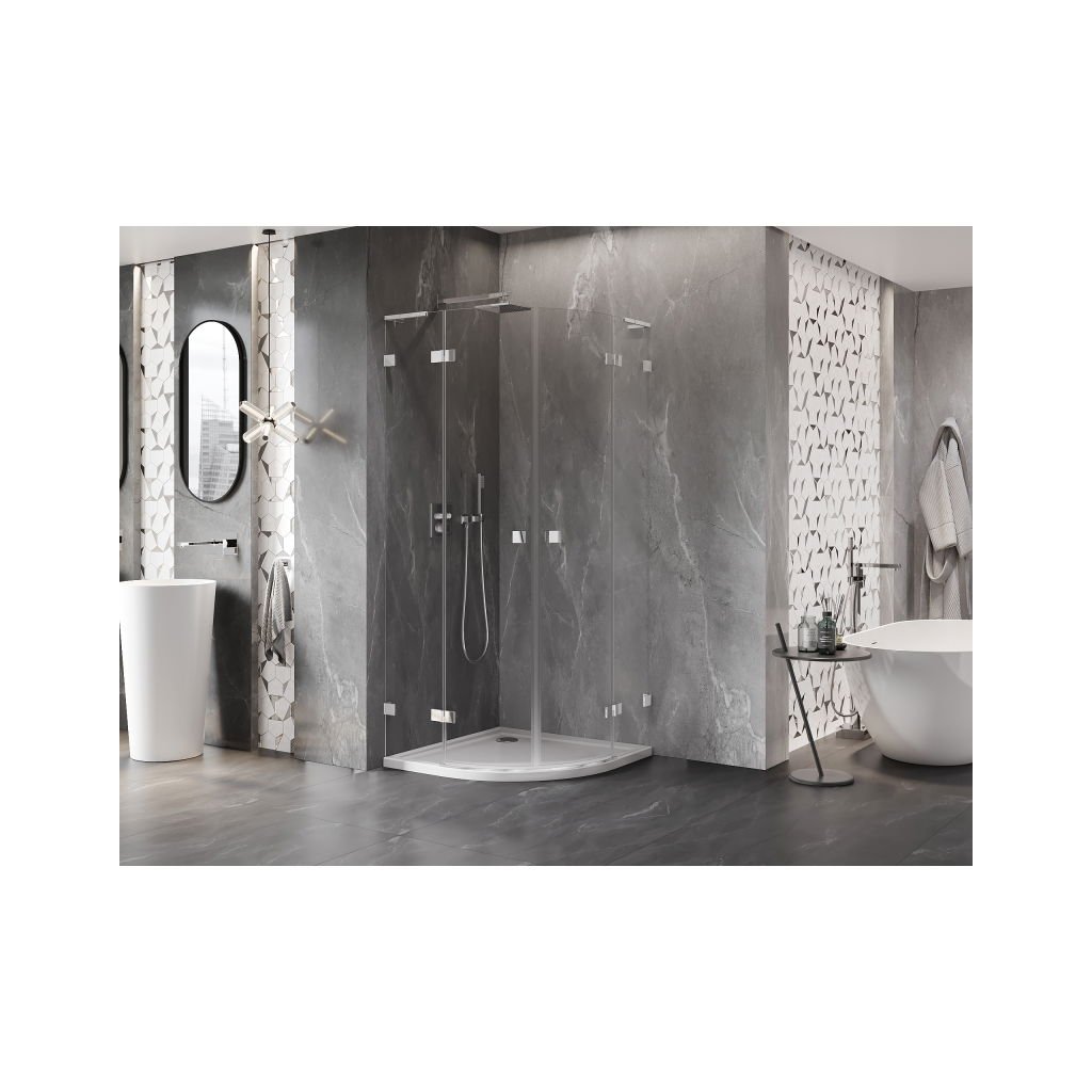 Mexen Lunar, L polkruhový výklopný sprchový kút 80 x 80 cm, 8mm číre sklo, chrómový profil, 833L-080L-080P-01-00