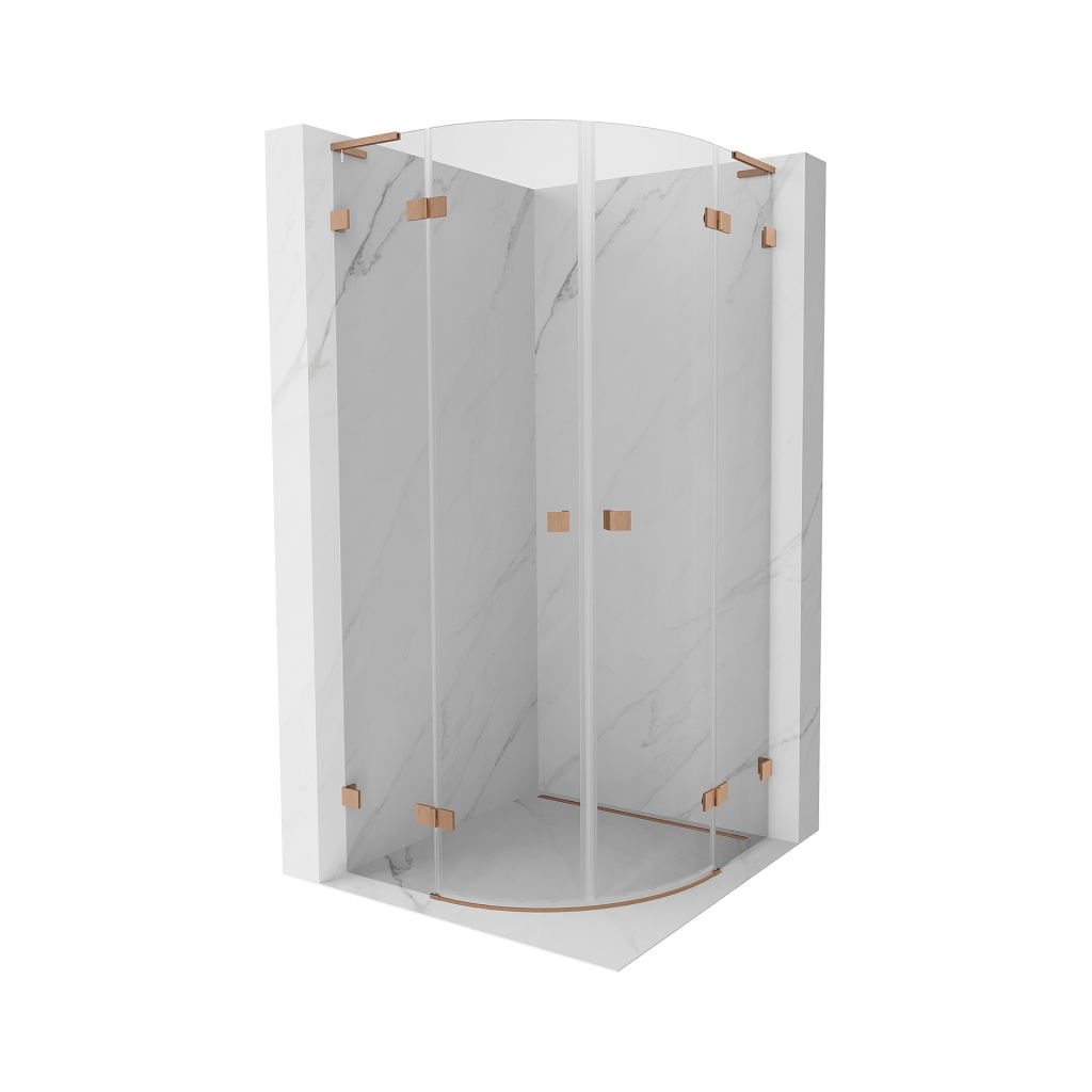 Mexen Lunar, L polkruhový výklopný sprchový kút 90 x 90 cm, 8mm číre sklo, profil medená matná, 833L-090L-090P-65-00