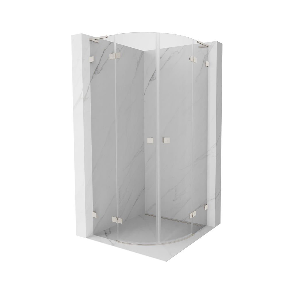 Mexen Lunar, L polkruhový výklopný sprchový kút 90 x 90 cm, 8mm číre sklo, oceľový profil, 833L-090L-090P-97-00