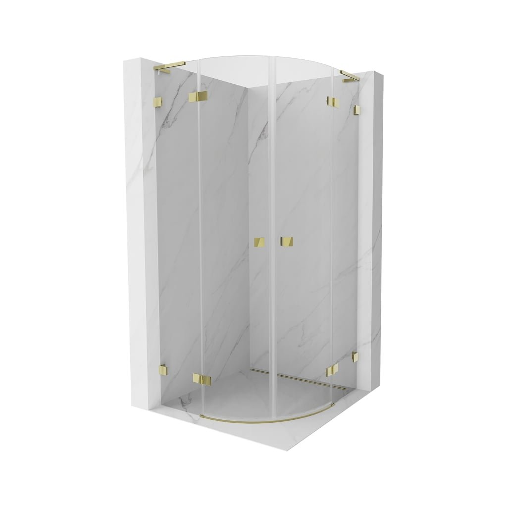 Mexen Lunar, L polkruhový výklopný sprchový kút 90 x 90 cm, 8mm číre sklo, zlatý profil, 833L-090L-090P-50-00