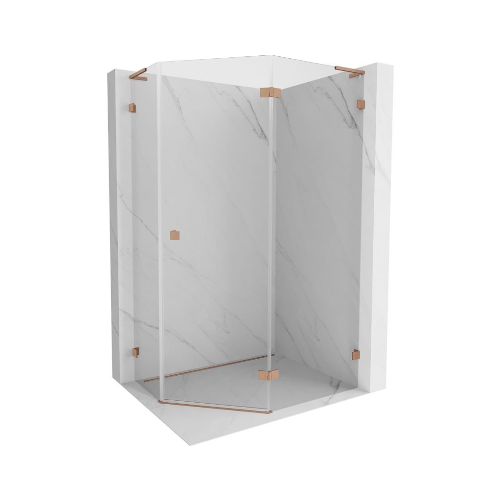 Mexen Lunar, L pravý výklopný päťuholníkový sprchový kút 100 x 80 cm, 8mm číre sklo, profil medená matná, 831L-100P-080L-65-00-P
