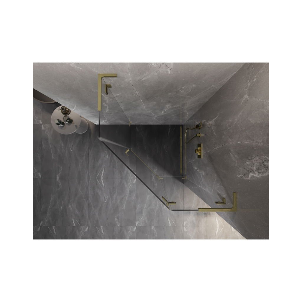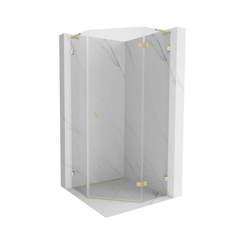 Mexen Lunar, L pravý výklopný päťuholníkový sprchový kút 100x100 cm, 8mm číre sklo, zlatý matný profil, 831L-100P-100L-55-00-P
