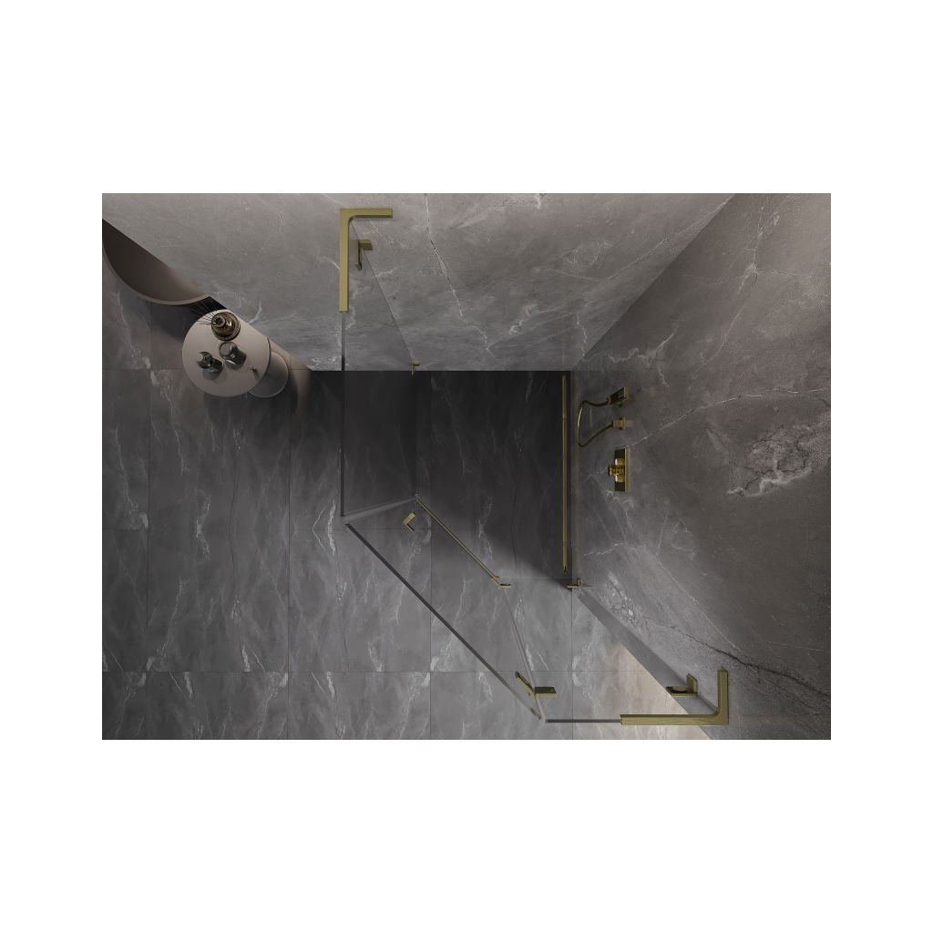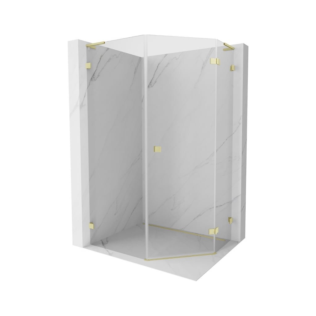 Mexen Lunar, L pravý výklopný päťuholníkový sprchový kút 80 x 100 cm, 8mm číre sklo, zlatý matný profil, 831L-080P-100L-55-00-P