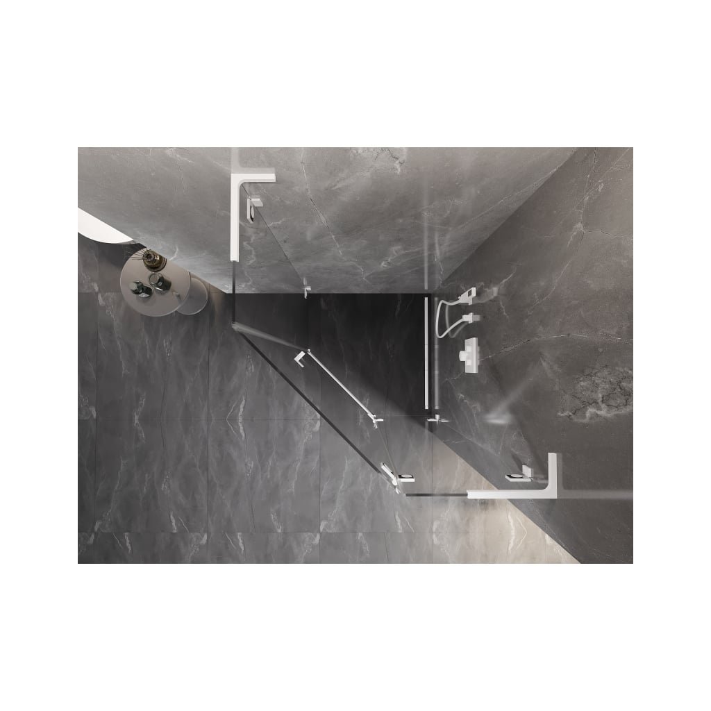 Mexen Lunar, L pravý výklopný päťuholníkový sprchový kút 80 x 80 cm, 8mm číre sklo, biely profil, 831L-080P-080L-20-00-P