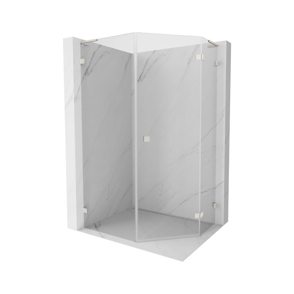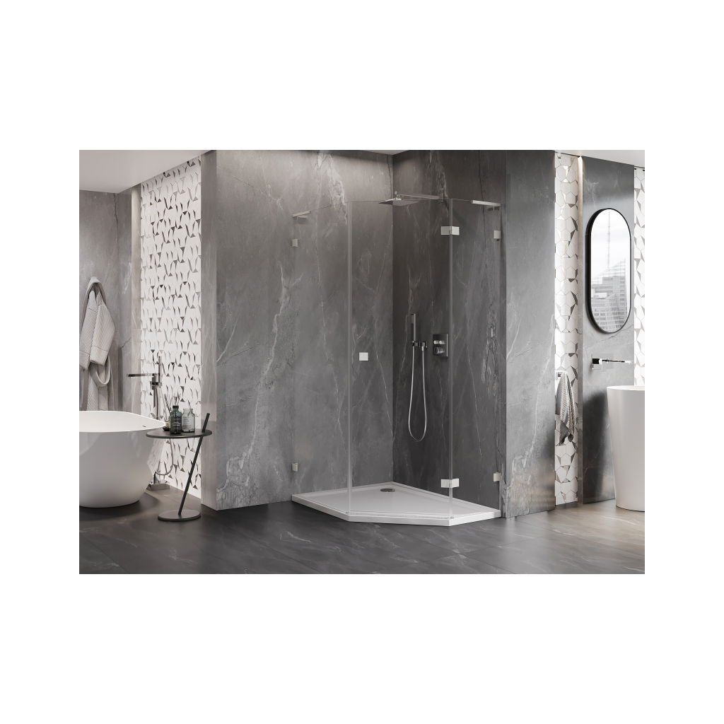 Mexen Lunar, L pravý výklopný päťuholníkový sprchový kút 80x100 cm, 8mm číre sklo, oceľový profil, 831L-080P-100L-97-00-P