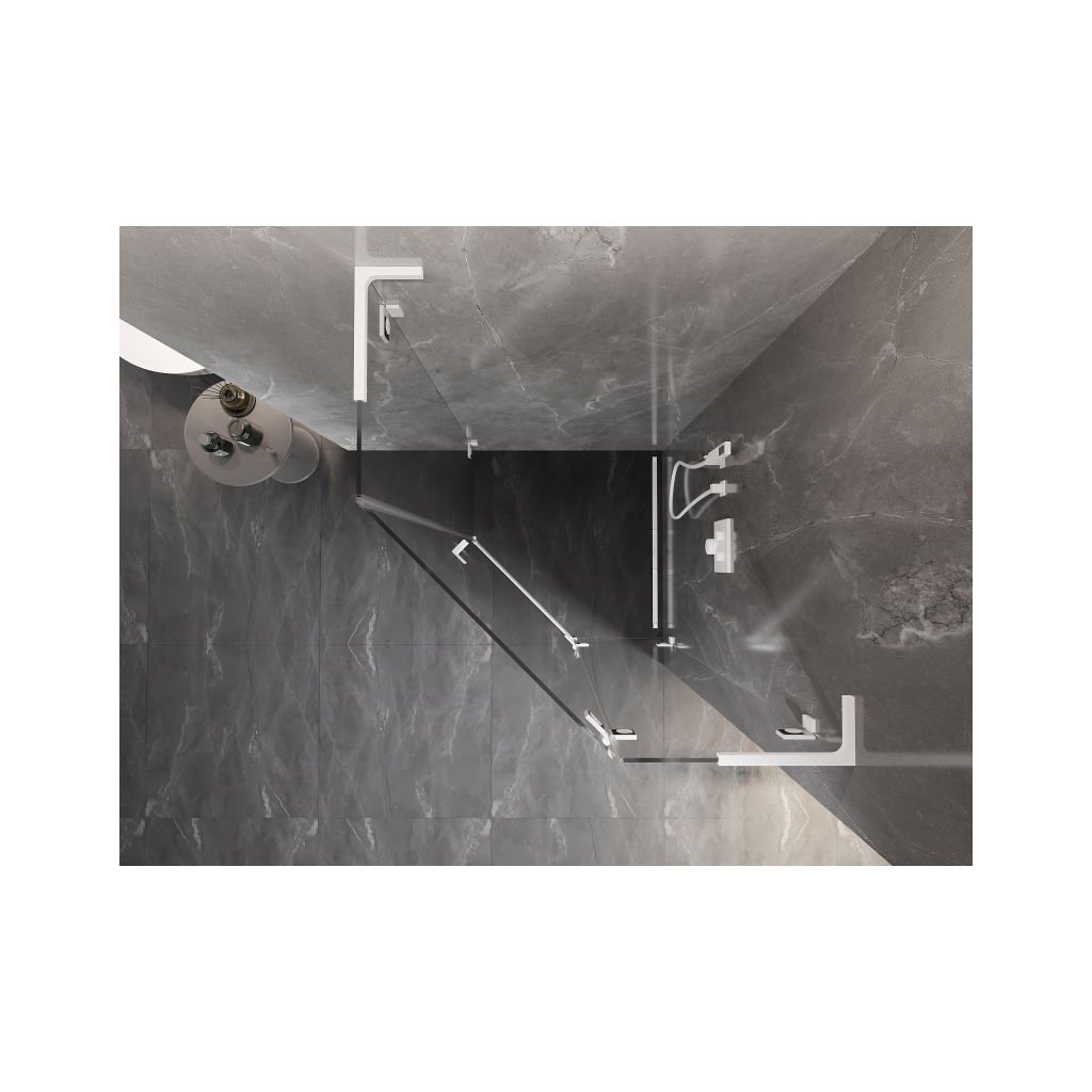 Mexen Lunar, L pravý výklopný päťuholníkový sprchový kút 90 x 90 cm, 8mm číre sklo, biely profil, 831L-090P-090L-20-00-P