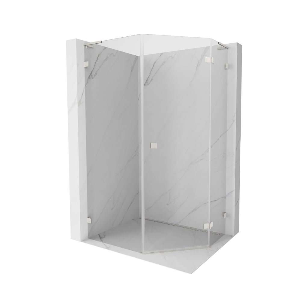 Mexen Lunar, L pravý výklopný päťuholníkový sprchový kút 90x100 cm, 8mm číre sklo, oceľový profil, 831L-090P-100L-97-00-P