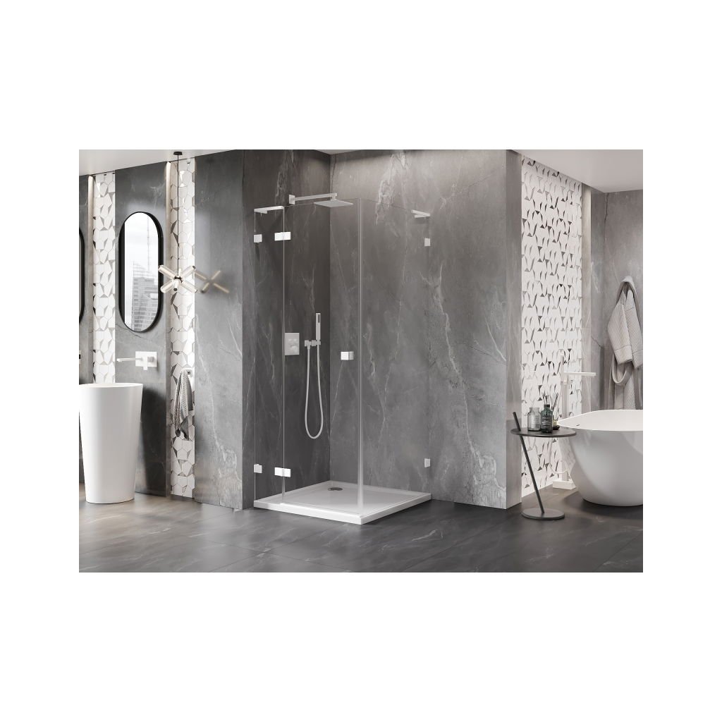 Mexen Lunar, L sklápací sprchový kút ľavý 100 x 100 cm, 8mm číre sklo, biely profil, 834L-100-100-20-00-L