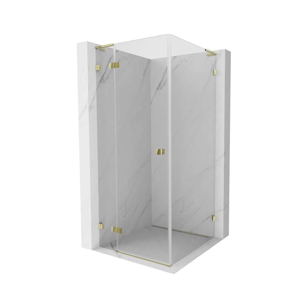 Mexen Lunar, L sklápací sprchový kút ľavý 100 x 100 cm, 8mm číre sklo, zlatý profil, 834L-100-100-50-00-L