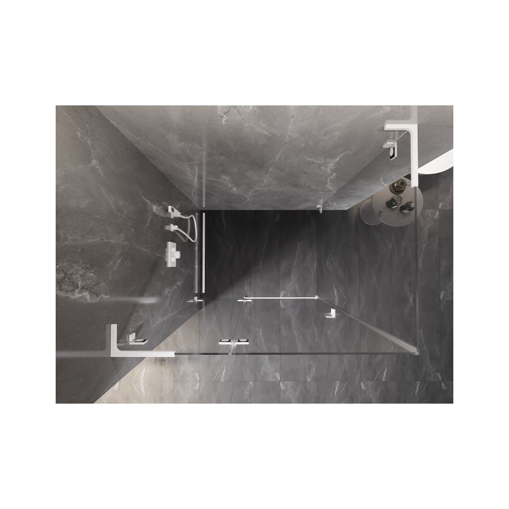 Mexen Lunar, L sklápací sprchový kút ľavý 85 x 70 cm, 8mm číre sklo, biely profil, 834L-085-070-20-00-L