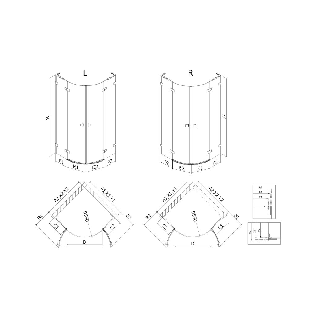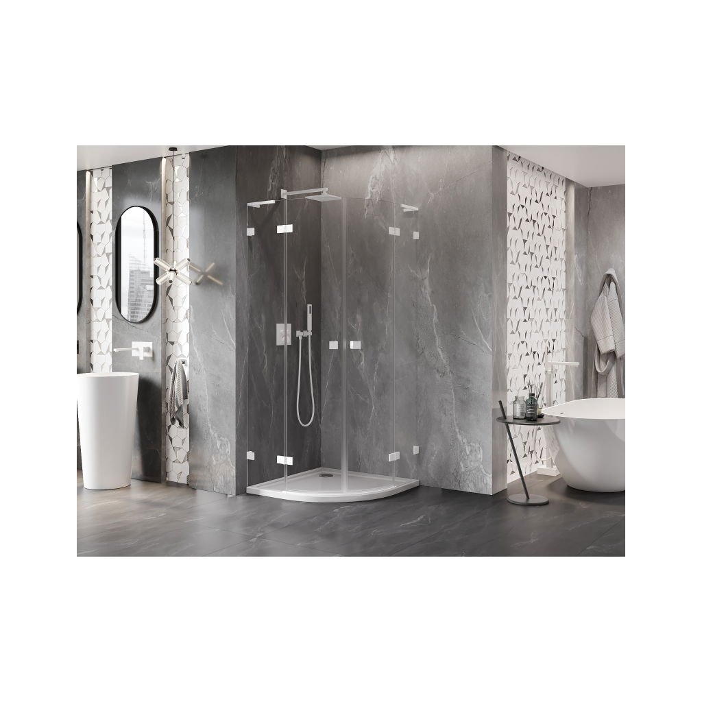 Mexen Lunar, L sklopný polkruhový sprchový kút 80 x 80 cm, 8mm číre sklo, biely profil, 833L-080L-080P-20-00