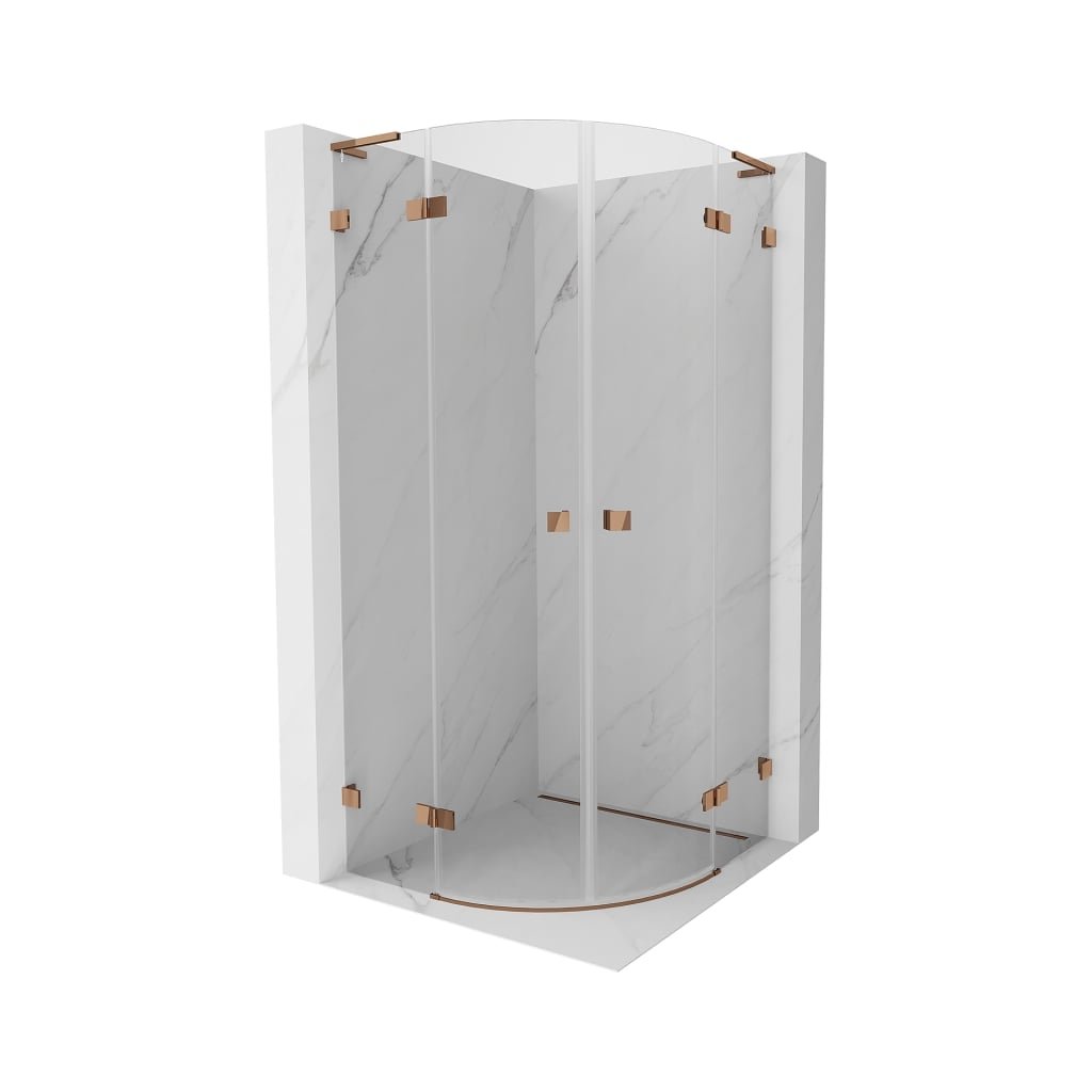 Mexen Lunar, L výklopný polkruhový sprchový kút 80 x 80 cm, 8mm číre sklo, profil ružové zlato, 833L-080L-080P-60-00