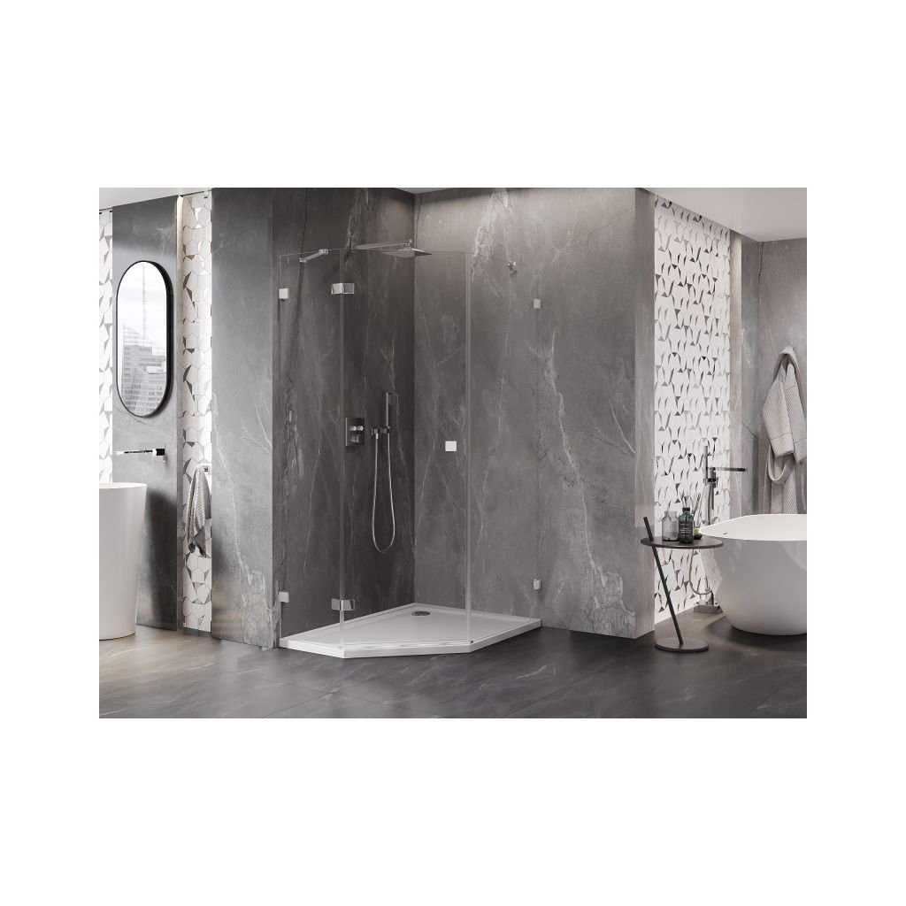 Mexen Lunar, päťuholníkový sprchový kút naklápací doľava 80 x 90 cm, 8mm číre sklo, chrómový profil, 831-080L-090P-01-00-L