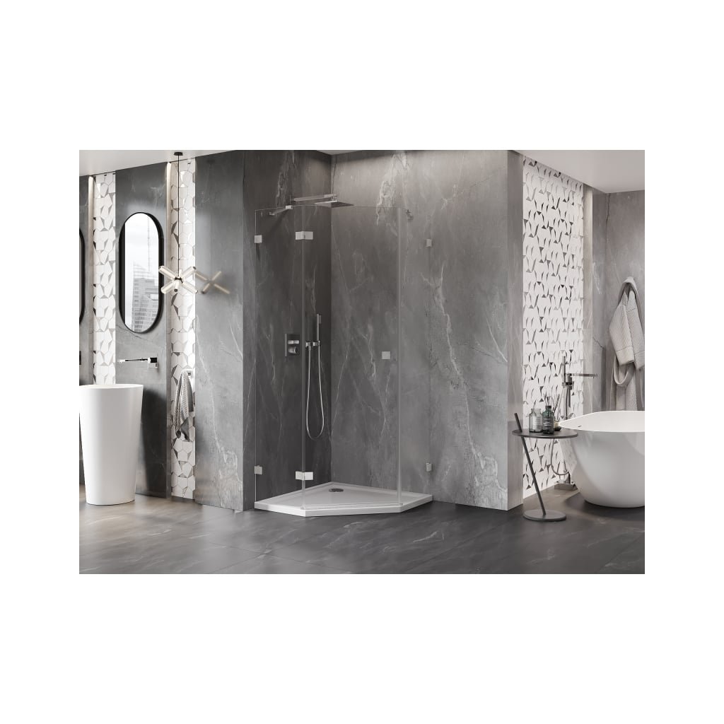 Mexen Lunar, päťuholníkový sprchový kút naklápací doľava 90 x 90 cm, 8mm číre sklo, oceľový profil, 831-090L-090P-97-00-L