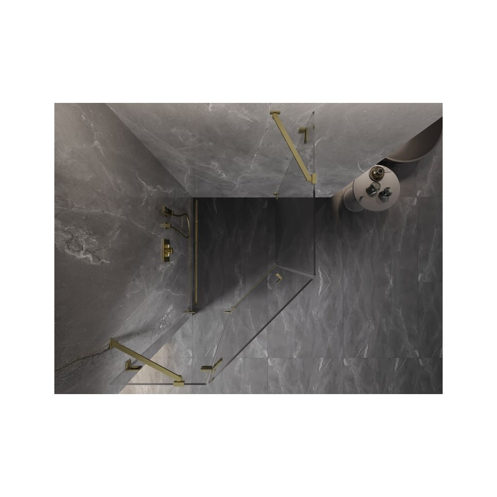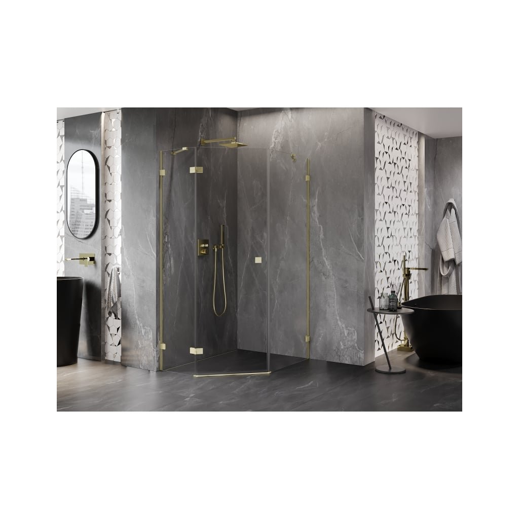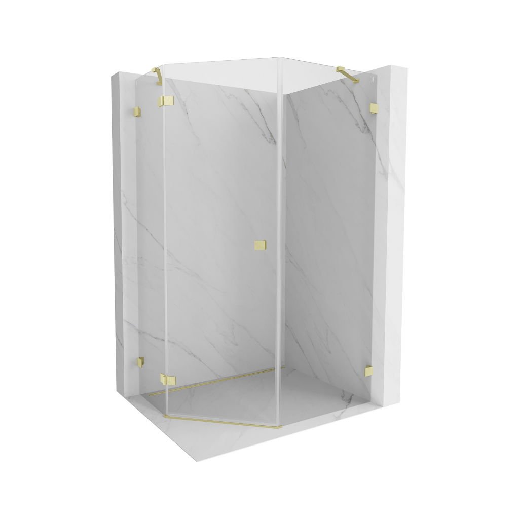 Mexen Lunar, päťuholníkový sprchový kút s ľavým sklonom 80 x 90 cm, 8mm číre sklo, zlatý matný profil, 831-080L-090P-55-00-L