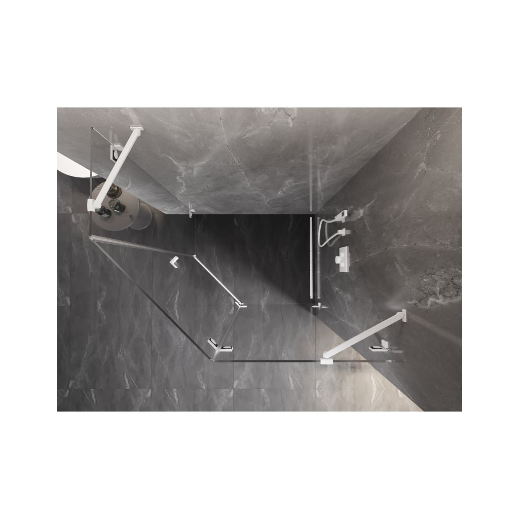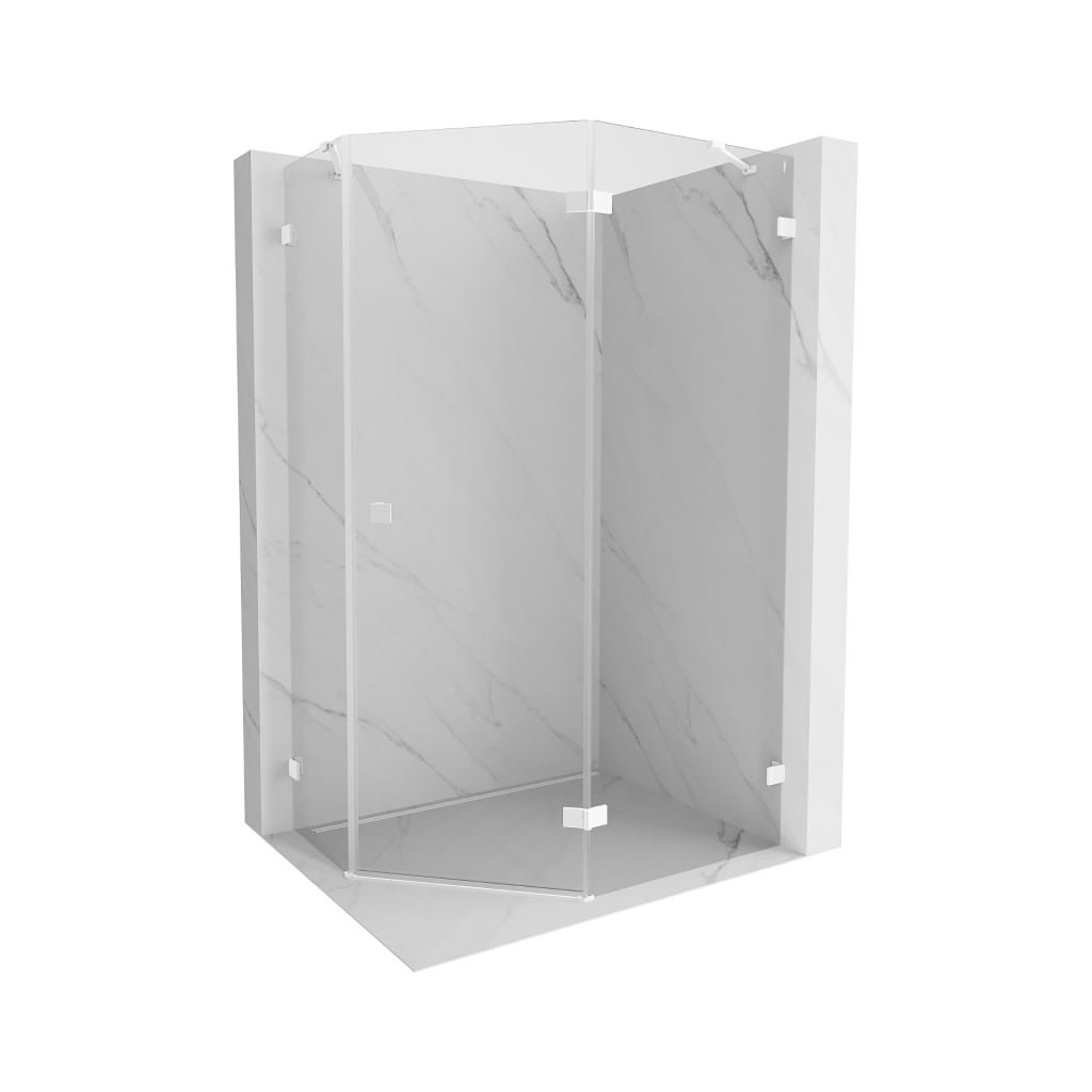 Mexen Lunar, päťuholníkový sprchový kút s pravým sklonom 100 x 80 cm, 8mm číre sklo, biely profil, 831-100P-080L-20-00-P