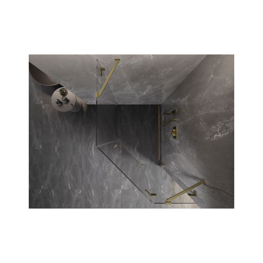 Mexen Lunar, päťuholníkový sprchový kút s pravým sklonom 80 x 100 cm, 8mm číre sklo, zlatý matný profil, 831-080P-100L-55-00-P