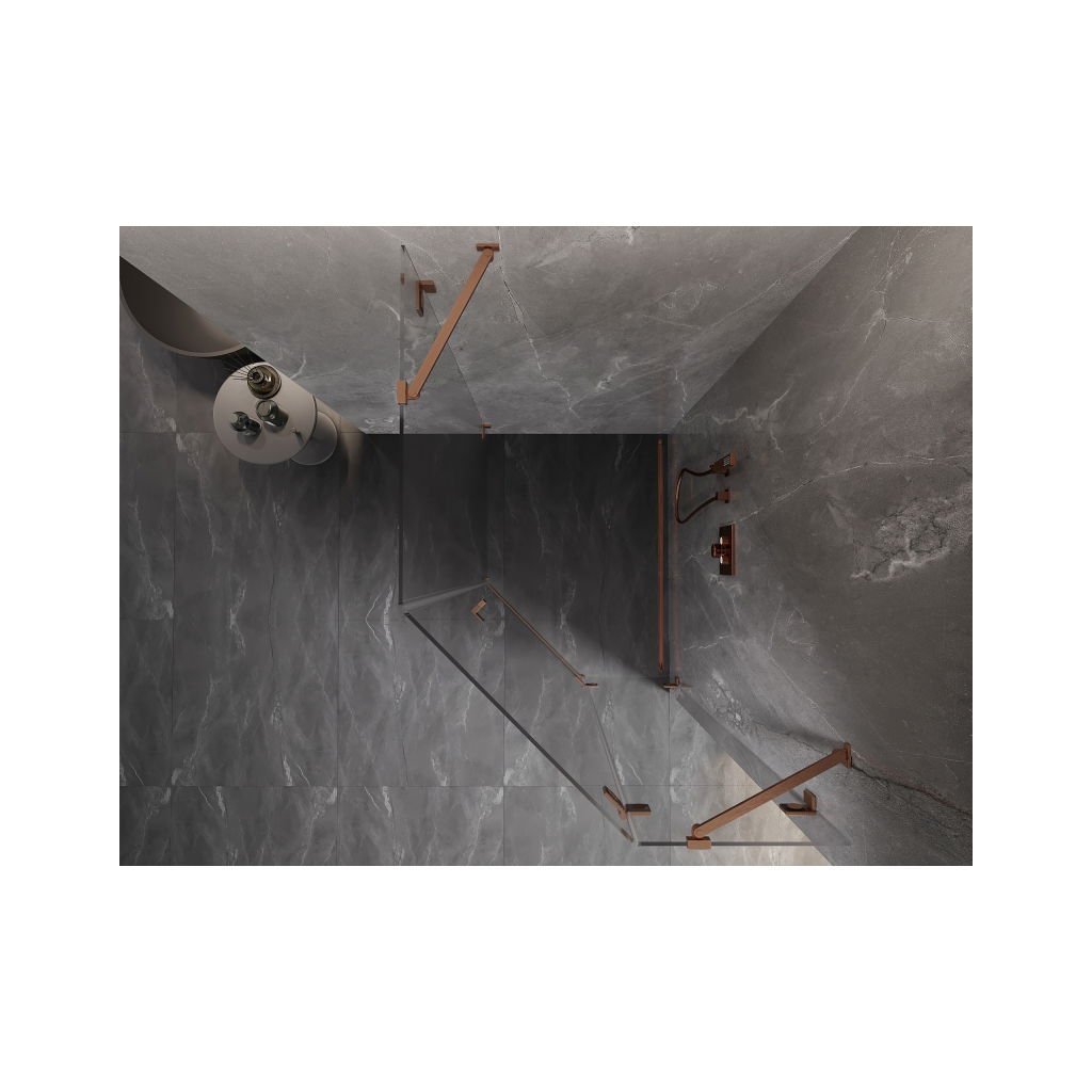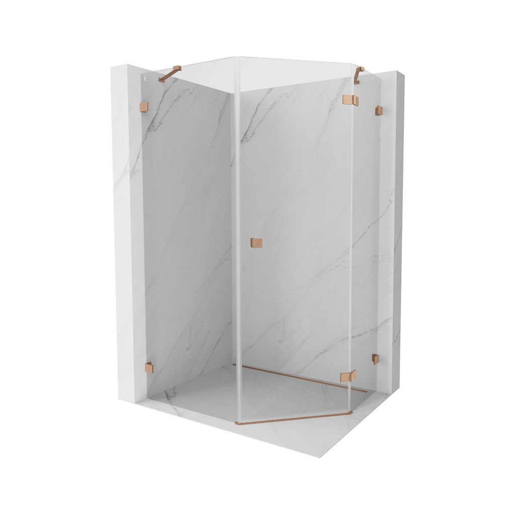 Mexen Lunar, päťuholníkový sprchový kút s pravým sklonom 80 x 90 cm, 8mm číre sklo, profil medená matná, 831-080P-090L-65-00-P