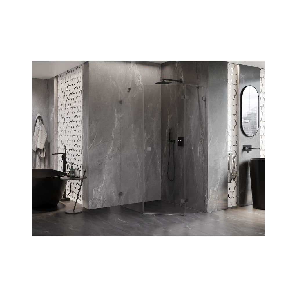 Mexen Lunar, päťuholníkový sprchový kút s pravým sklonom 90 x 100 cm, 8mm číre sklo, pištoľovo sivý kartáčovaný - 831-090P-100L-66-00-P