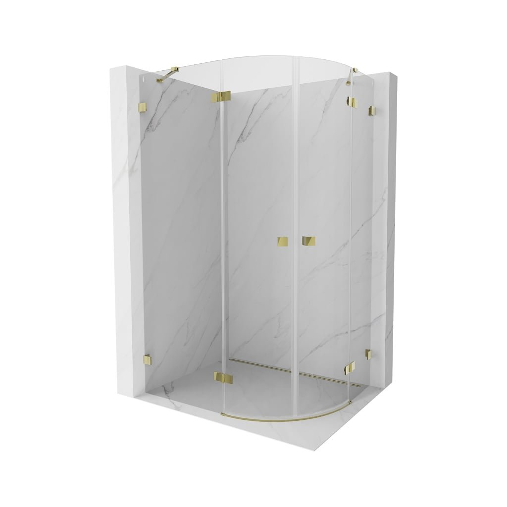Mexen Lunar, polkruhový sprchový kút naklápací doľava 100 x 80 cm, 8mm číre sklo, zlatý profil, 833-100L-080P-50-00