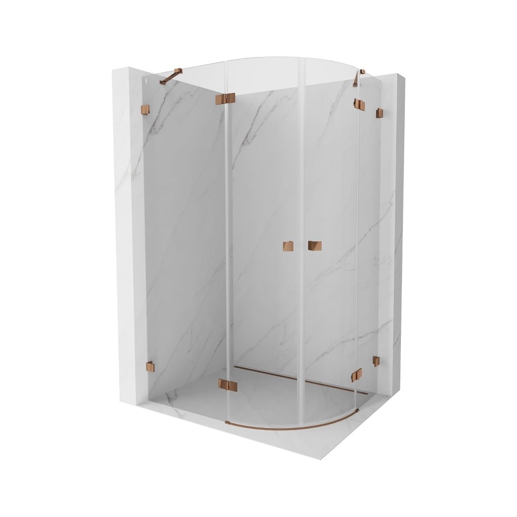 Mexen Lunar, polkruhový sprchový kút naklápací doľava 90 x 80 cm, 8mm číre sklo, profil ružové zlato, 833-090L-080P-60-00