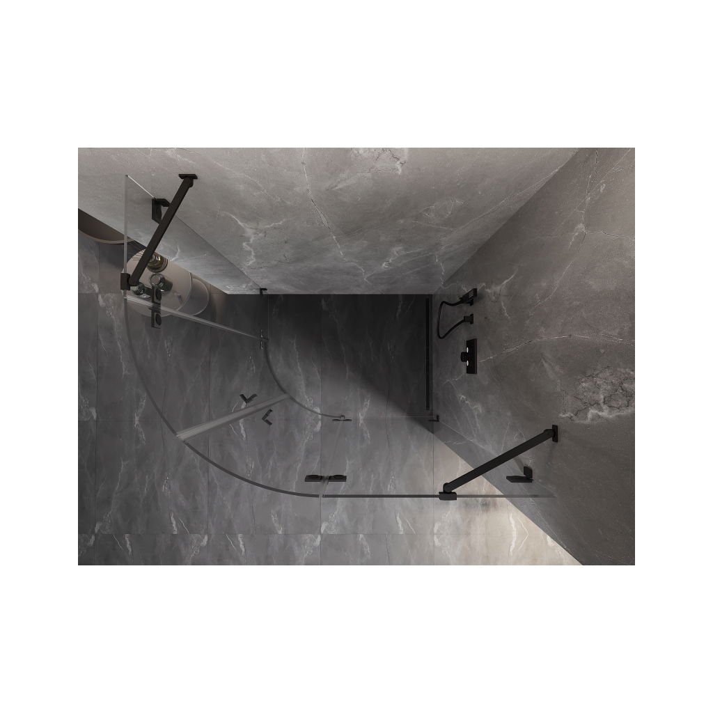 Mexen Lunar, pravý polkruhový sprchový kút 100 x 70 cm, 8mm číre sklo, čierny profil, 833-100P-070L-70-00