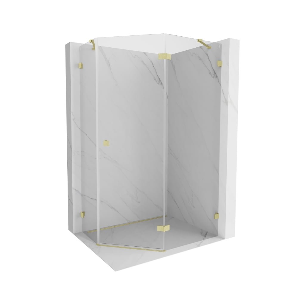 Mexen Lunar, pravý výklopný päťuholníkový sprchový kút 100 x 80 cm, 8mm číre sklo, zlatý matný profil, 831-100P-080L-55-00-P