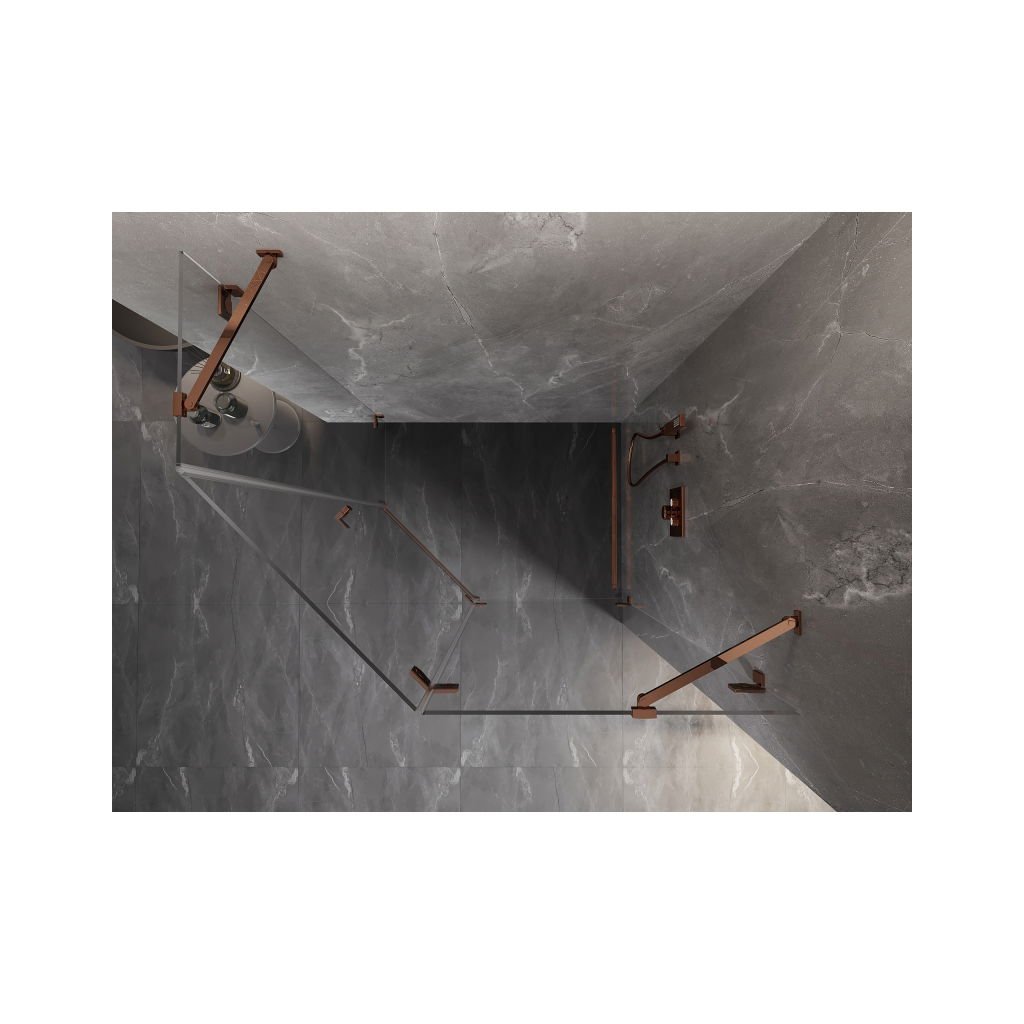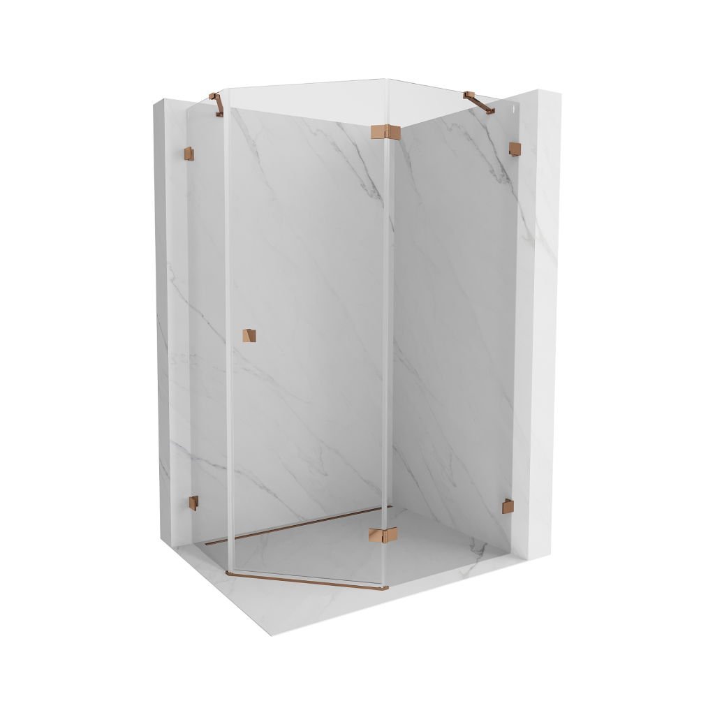 Mexen Lunar, pravý výklopný päťuholníkový sprchový kút 100 x 90 cm, 8mm číre sklo, profil ružové zlato, 831-100P-090L-60-00-P