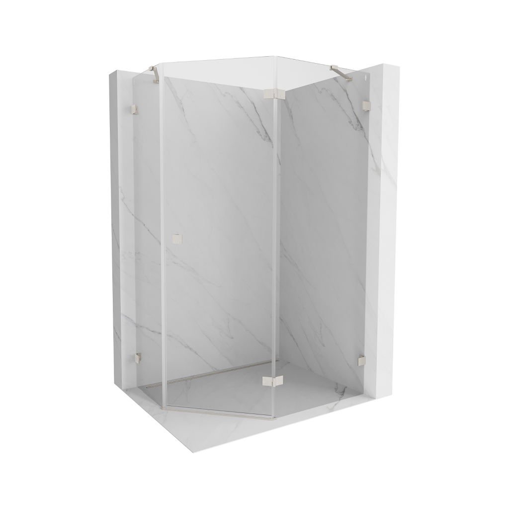 Mexen Lunar, pravý výklopný päťuholníkový sprchový kút 90 x 80 cm, 8mm číre sklo, oceľový profil, 831-090P-080L-97-00-P