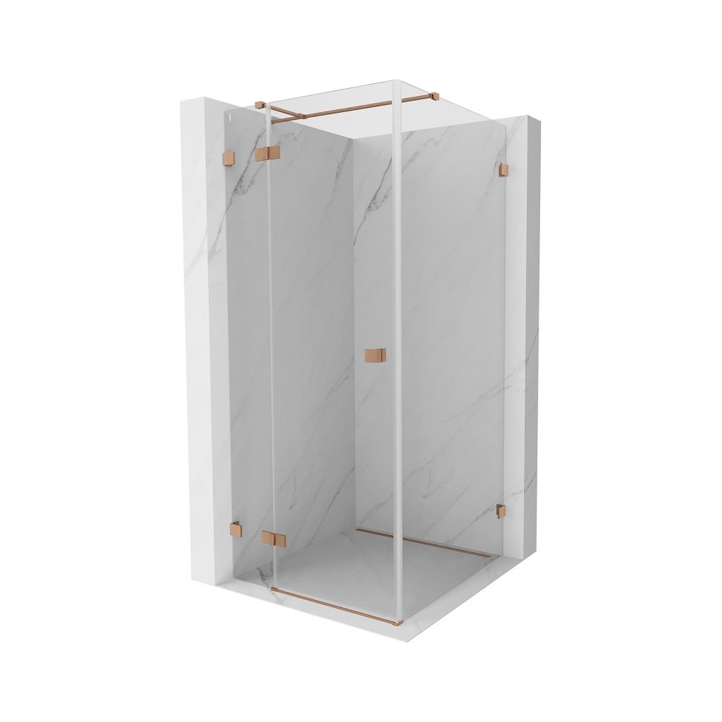 Mexen Lunar T, sklápací sprchový kút ľavý 110 x 110 cm, 8mm číre sklo, profil medená matná, 834T-110-110-65-00-L