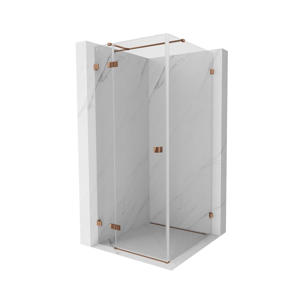 Mexen Lunar T, sklápací sprchový kút ľavý 110 x 110 cm, 8mm číre sklo, profil ružové zlato, 834T-110-110-60-00-L