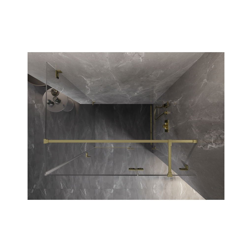 Mexen Lunar T, výklopný sprchový kút pravý 130 x 90 cm, 8mm číre sklo, zlatý kartáčovaný - 834T-130-090-55-00-P