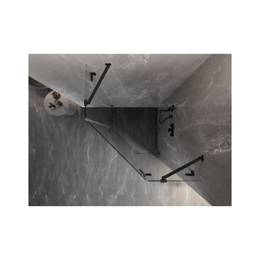 Mexen Lunar, výklopný päťuholníkový sprchový kút pravý 90 x 90 cm, 8mm číre sklo, čierny profil, 831-090P-090L-70-00-P