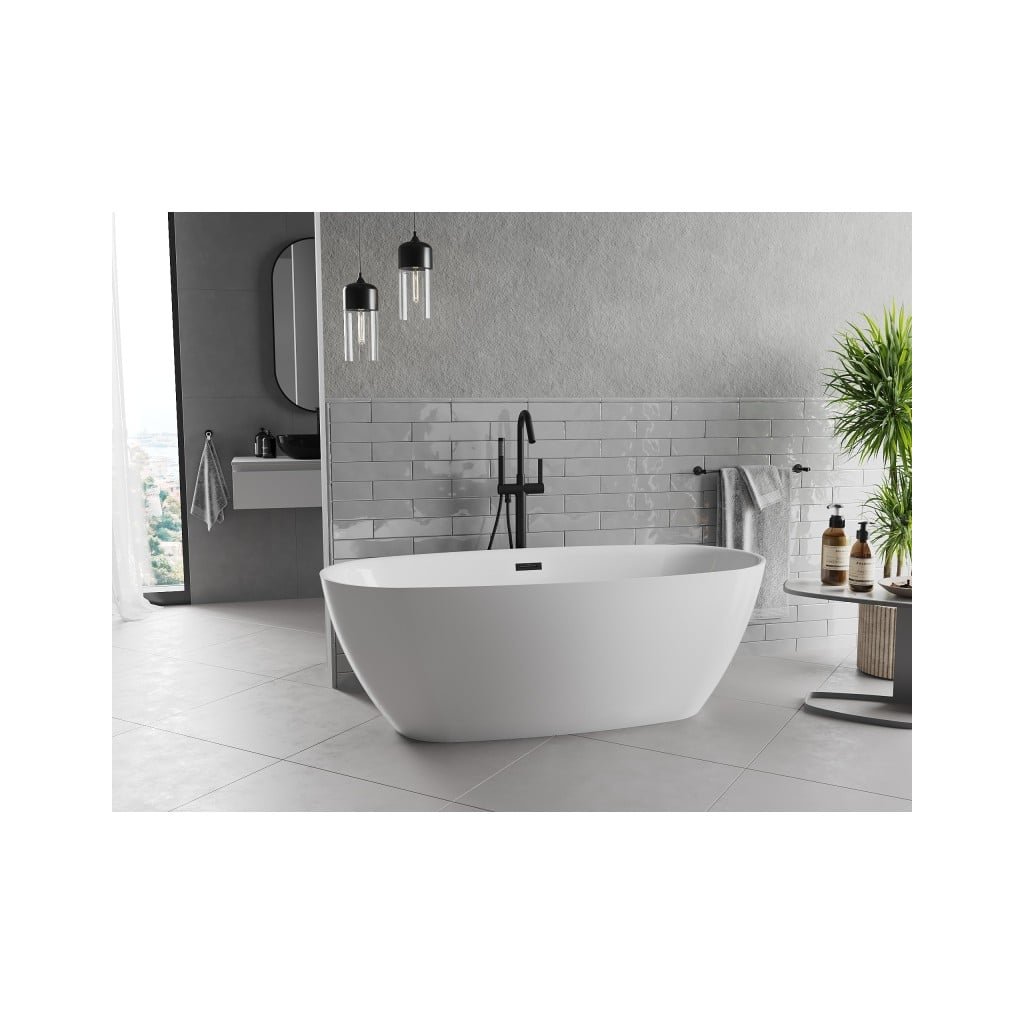 Mexen Luvo Slim, voľne stojaca vaňa 170 × 75 cm, biela lesklá, čierny prepad, 52801707500-70