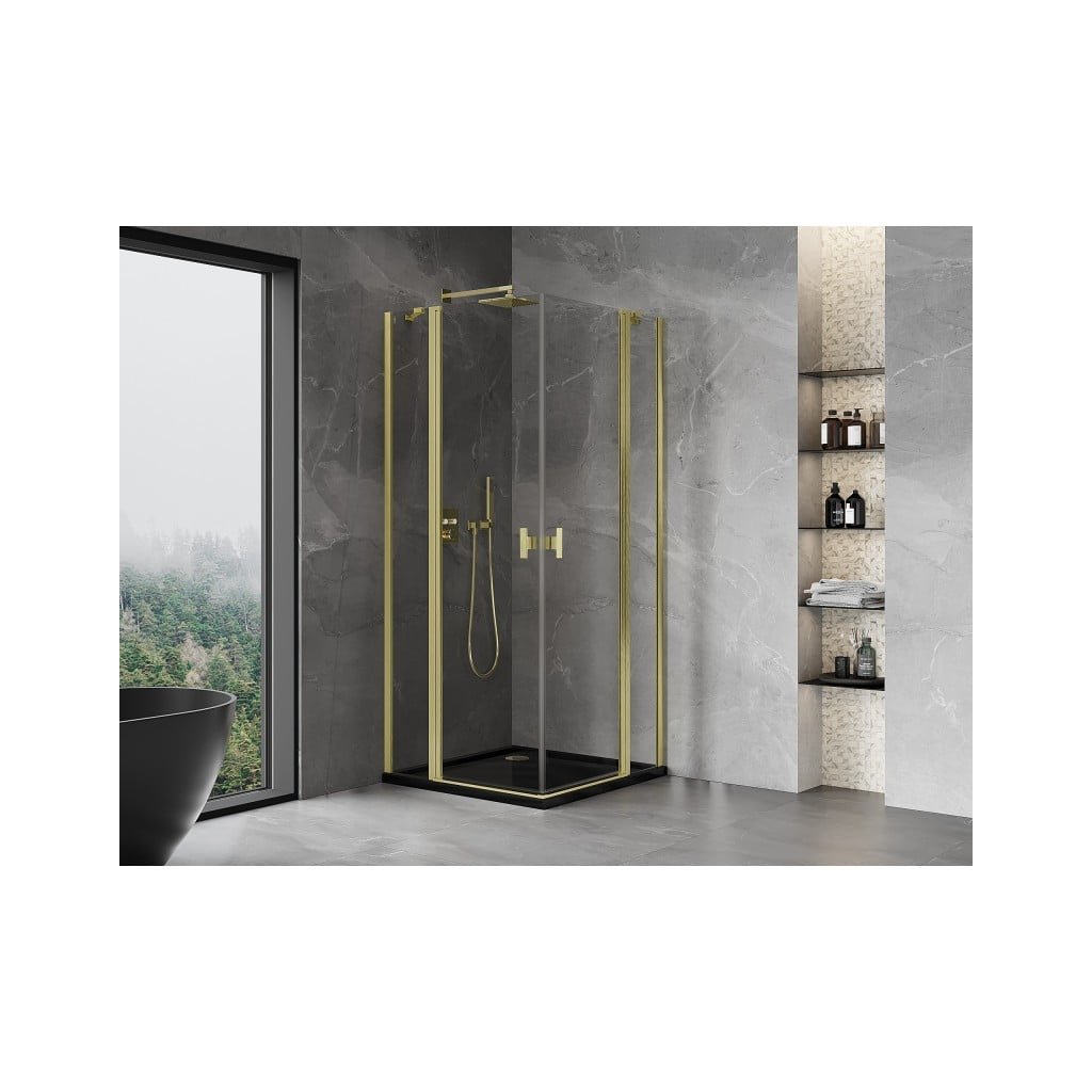 Mexen, Mexen Mist Duo sklápací sprchový kút 85 x 85 cm, transparentný, brúsené zlato - 8A4-085-085-55-00