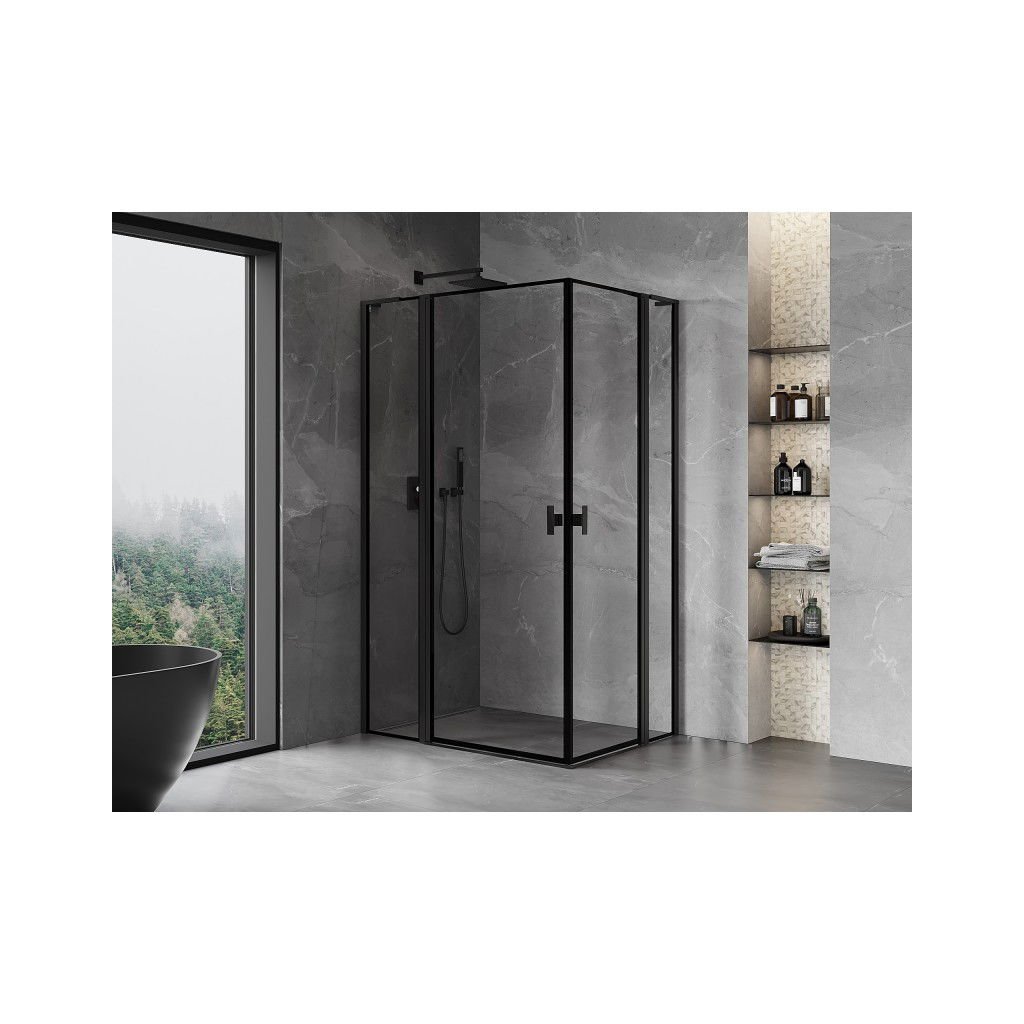 Mexen, Mexen Mist L Duo výklopný sprchový kút 115 x 100 cm, čierny rám - 8A4L-115L-100P-70-70