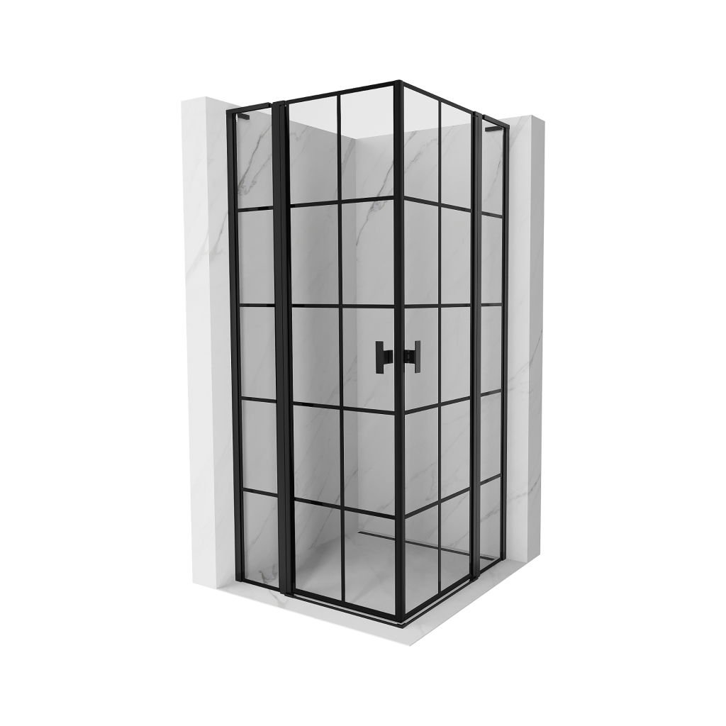 Mexen, Mexen Mist L Duo výklopný sprchový kút 115 x 115 cm, čierna mriežka - 8A4L-115L-115P-70-77
