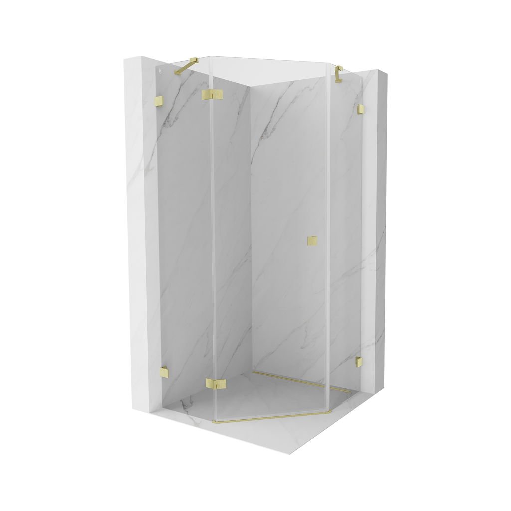 Mexen Lunar, Päťuholníkový sprchový kút Mexen Lunar naklápací doľava 100 x 100 cm, 8mm číre sklo, zlatý matný profil, 831-100L-100P-55-00-L