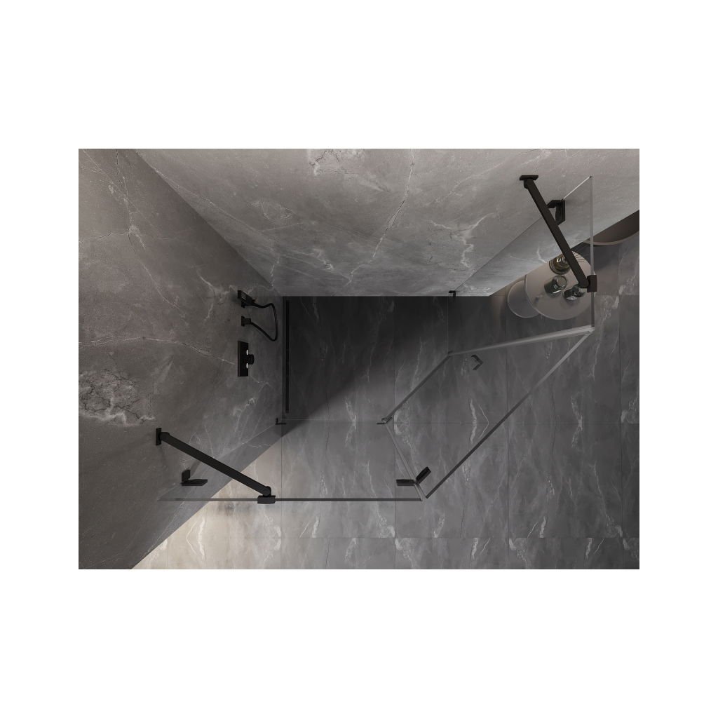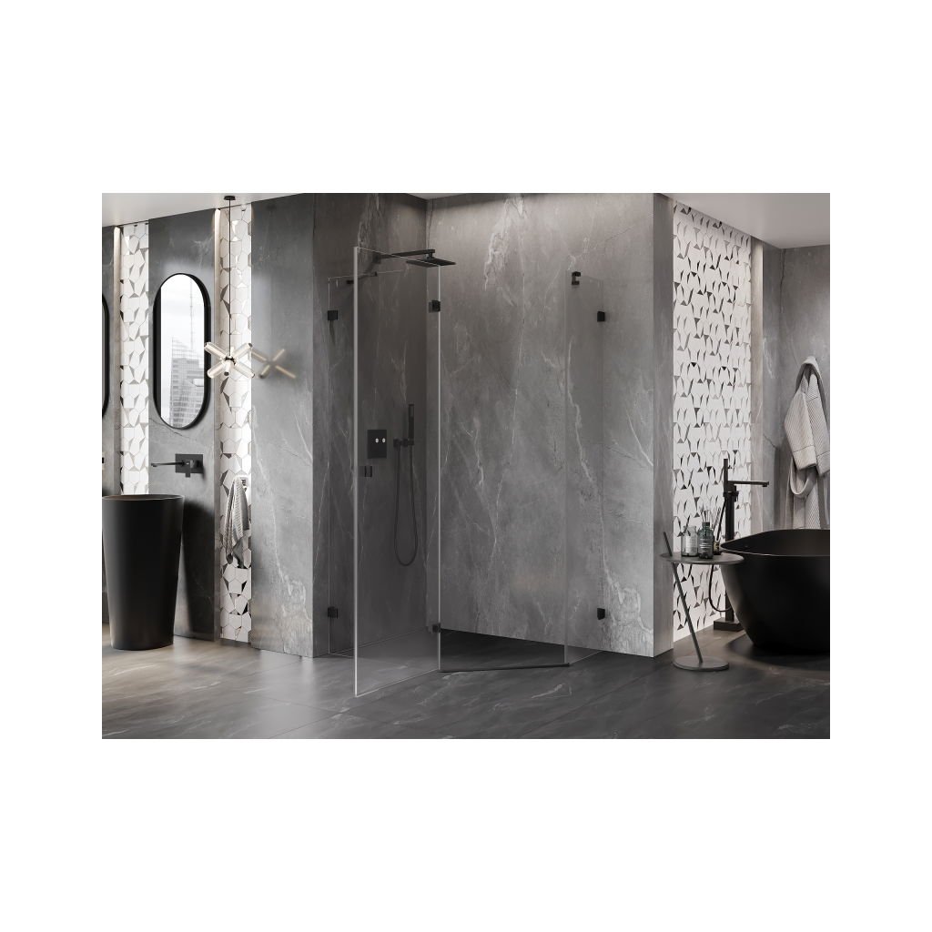 Mexen Lunar, Päťuholníkový sprchový kút Mexen Lunar naklápací doľava 100 x 80 cm, 8mm číre sklo, čierny profil, 831-100L-080P-70-00-L